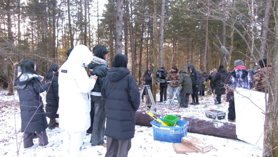 带着对先辈的崇敬,师生一行来到电影《青山赤子》的拍摄现场,身着老式林区工装的演员们正演绎着“人拉肩扛运木材”的场景,寒风中高亢的劳动号子回荡在林间,瞬间将师生们带回了艰苦卓绝的林区开发年代。