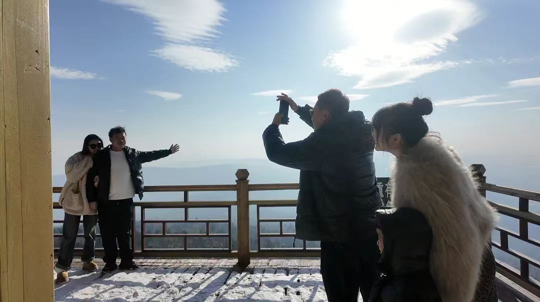 游客瑶瑶告诉记者,“大箐山这个观景平台真的特别好,不光有雪还有山,真的很好玩,也很好看,而且咱们这的空气特别的好。”
