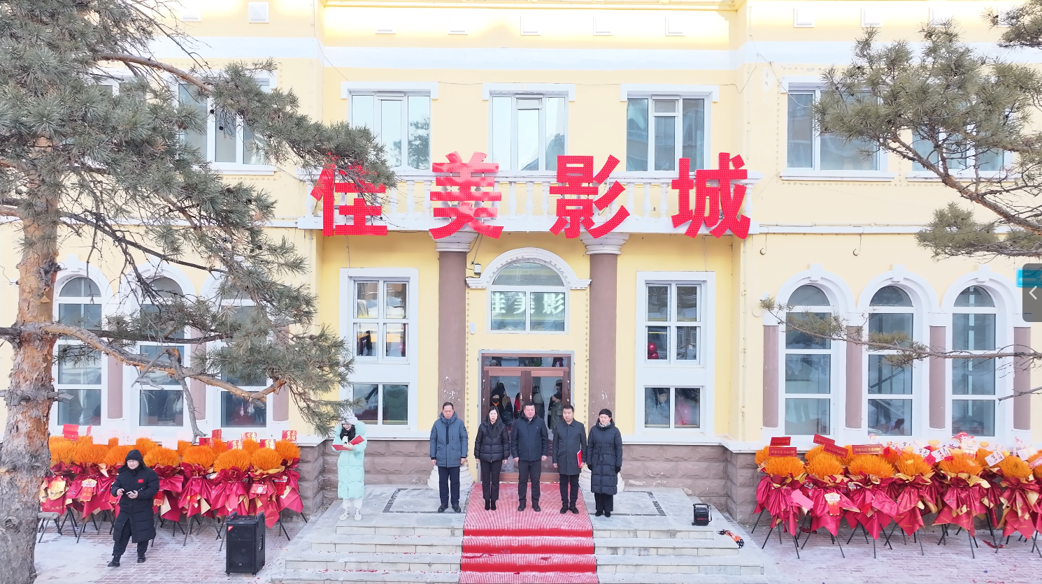 县领导滑东光、张丽娟、刘雪丹,朗乡林业局公司副总经理张韶辉,大箐山县佳美影城总经理李国强等参加开业仪式。县委常委、常务副县长滑东光致辞,副县长刘雪丹解读“光影惠民”活动,随后众人共同为影城剪彩。