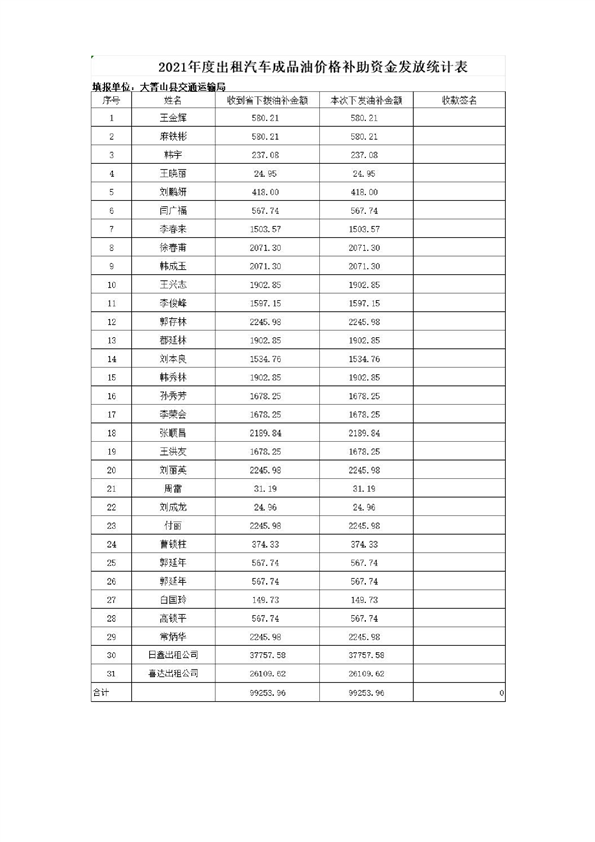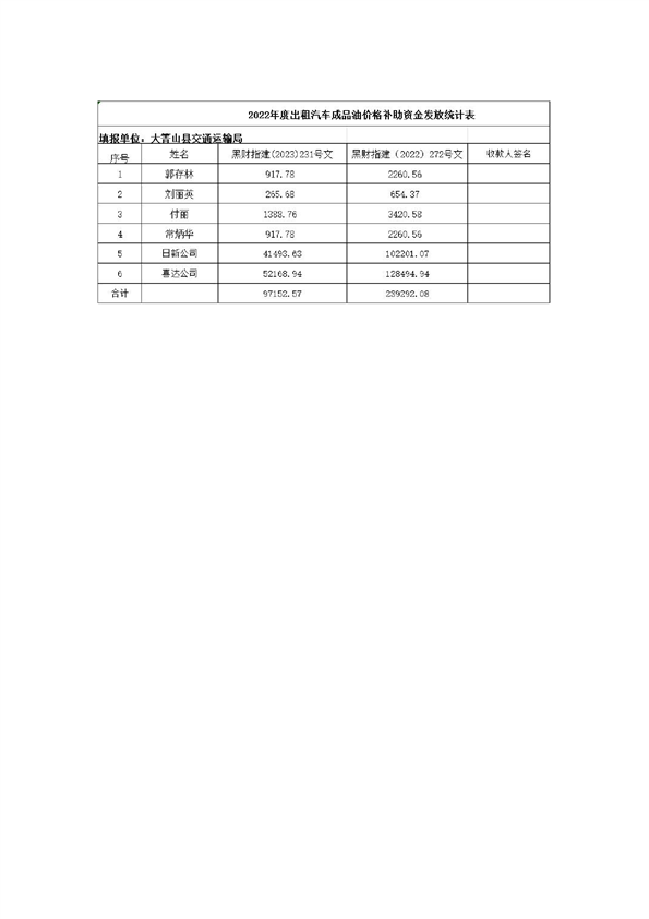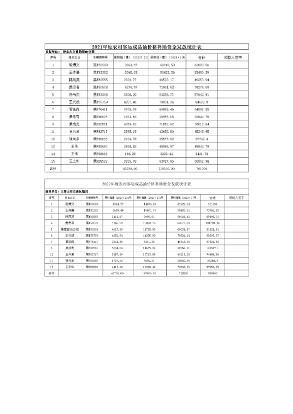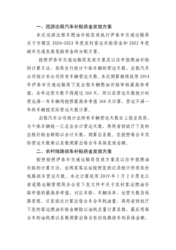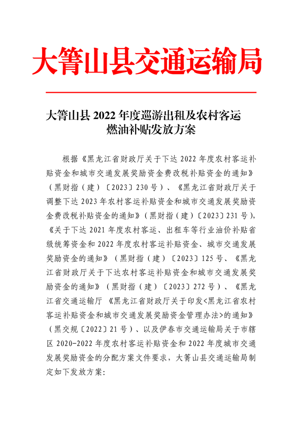 大箐山县2022年度巡游出租及农村客运燃油补贴发放方案