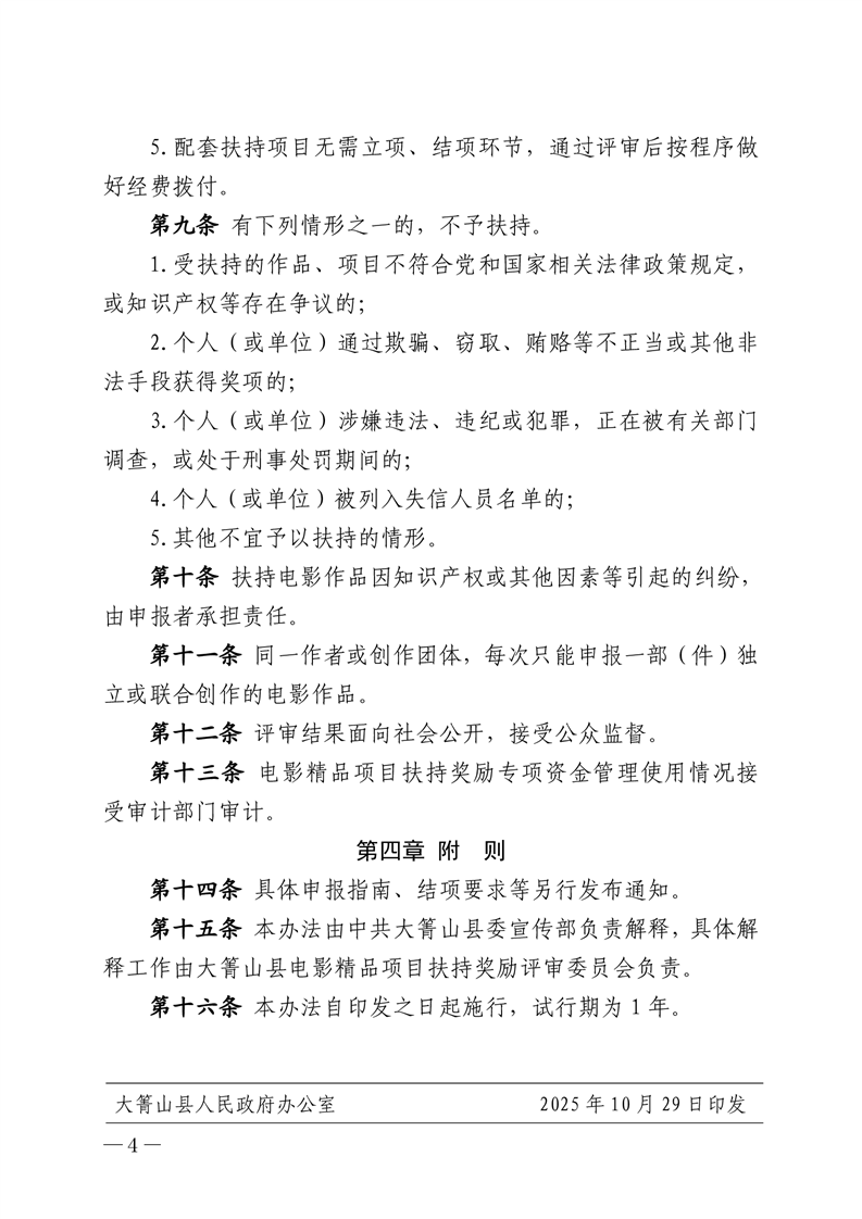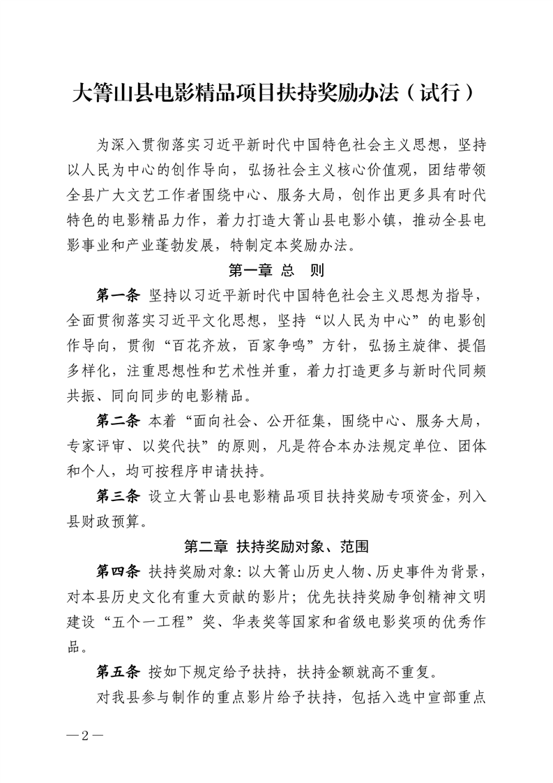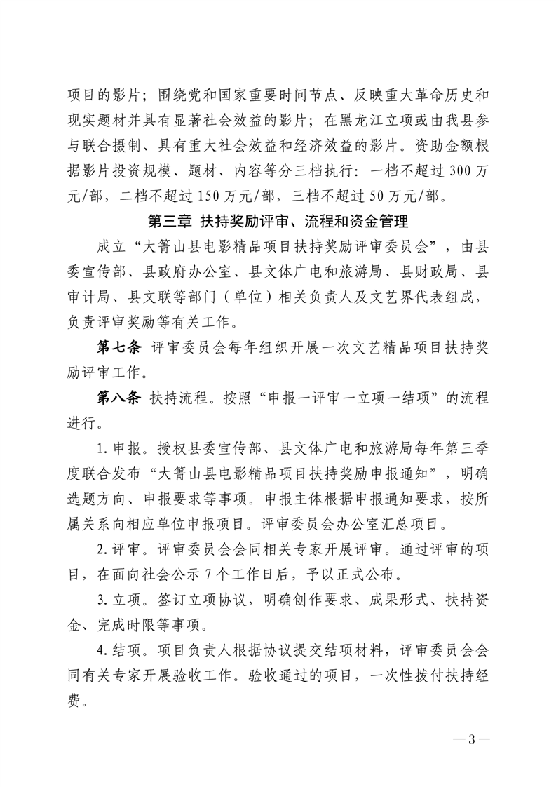 关于印发《大箐山县电影精品项目扶持奖励办法(试行)》的通知