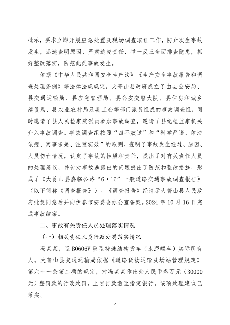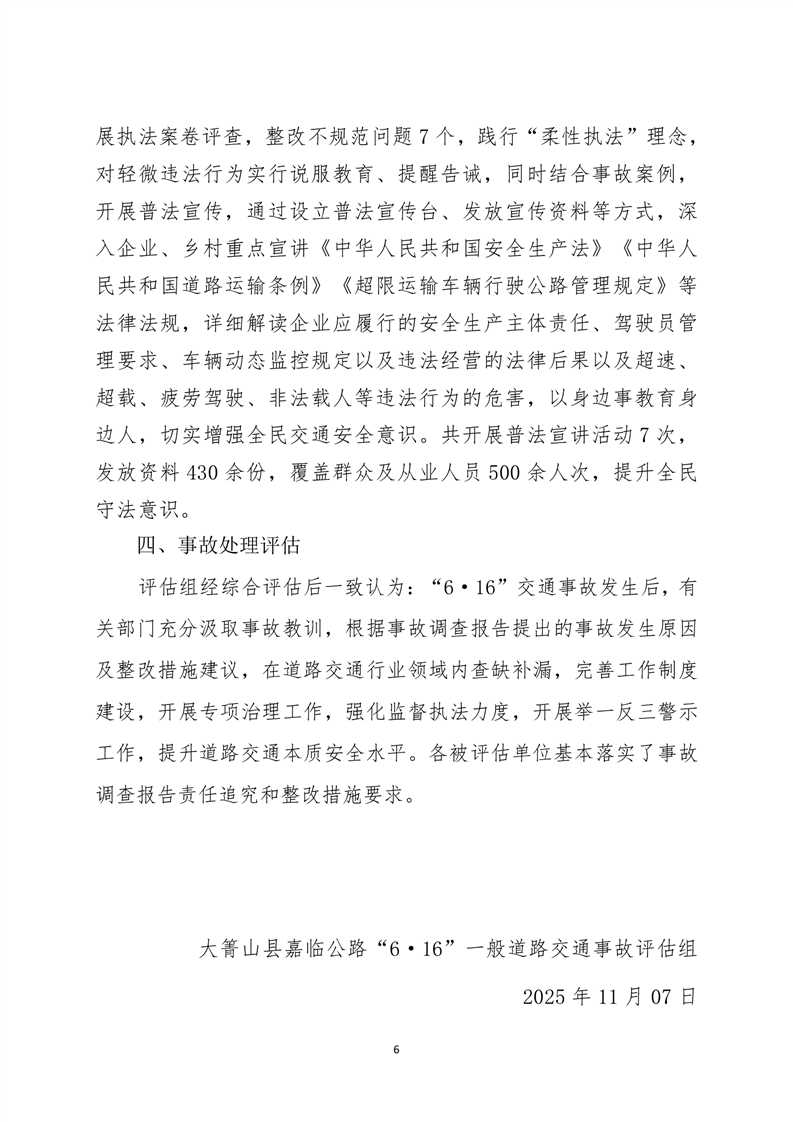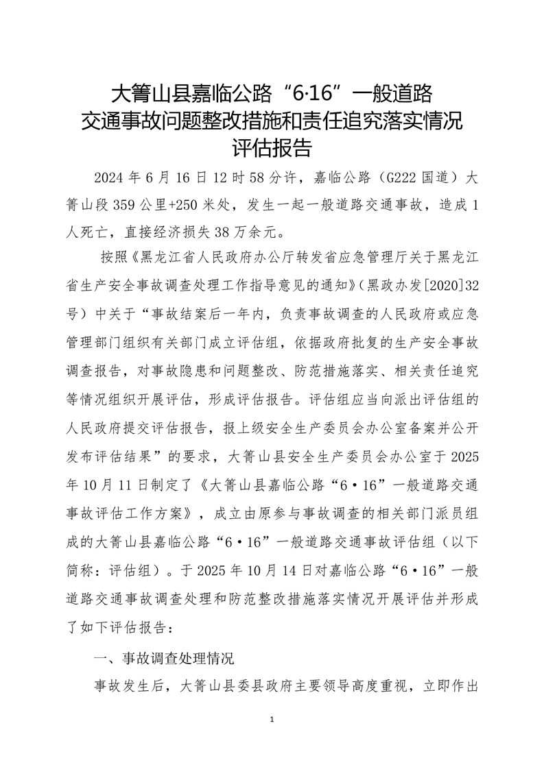 大箐山县嘉临公路“6·16”一般道路交通事故问题整改措施和责任追究落实情况评估报告