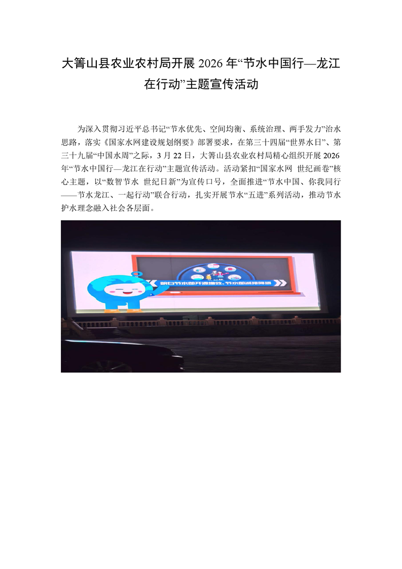 大箐山县农业农村局开展2026年“节水中国行—龙江在行动”主题宣传活动