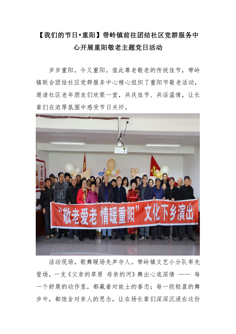 带岭镇前往团结社区党群服务中心开展重阳敬老主题党日活动