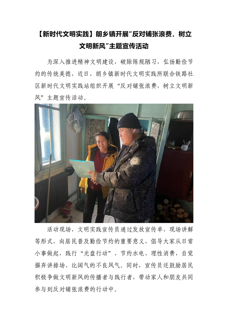 朗乡镇开展“反对铺张浪费,树立文明新风”主题宣传活动