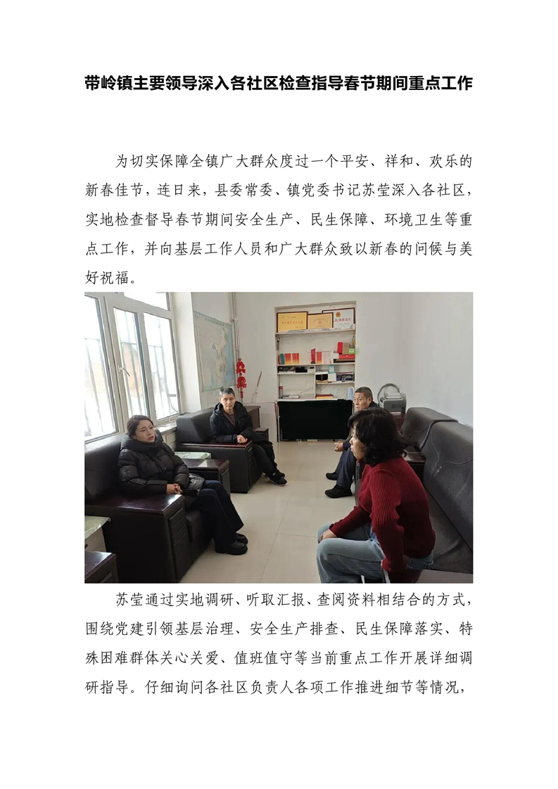 带岭镇主要领导深入各社区检查指导春节期间重点工作