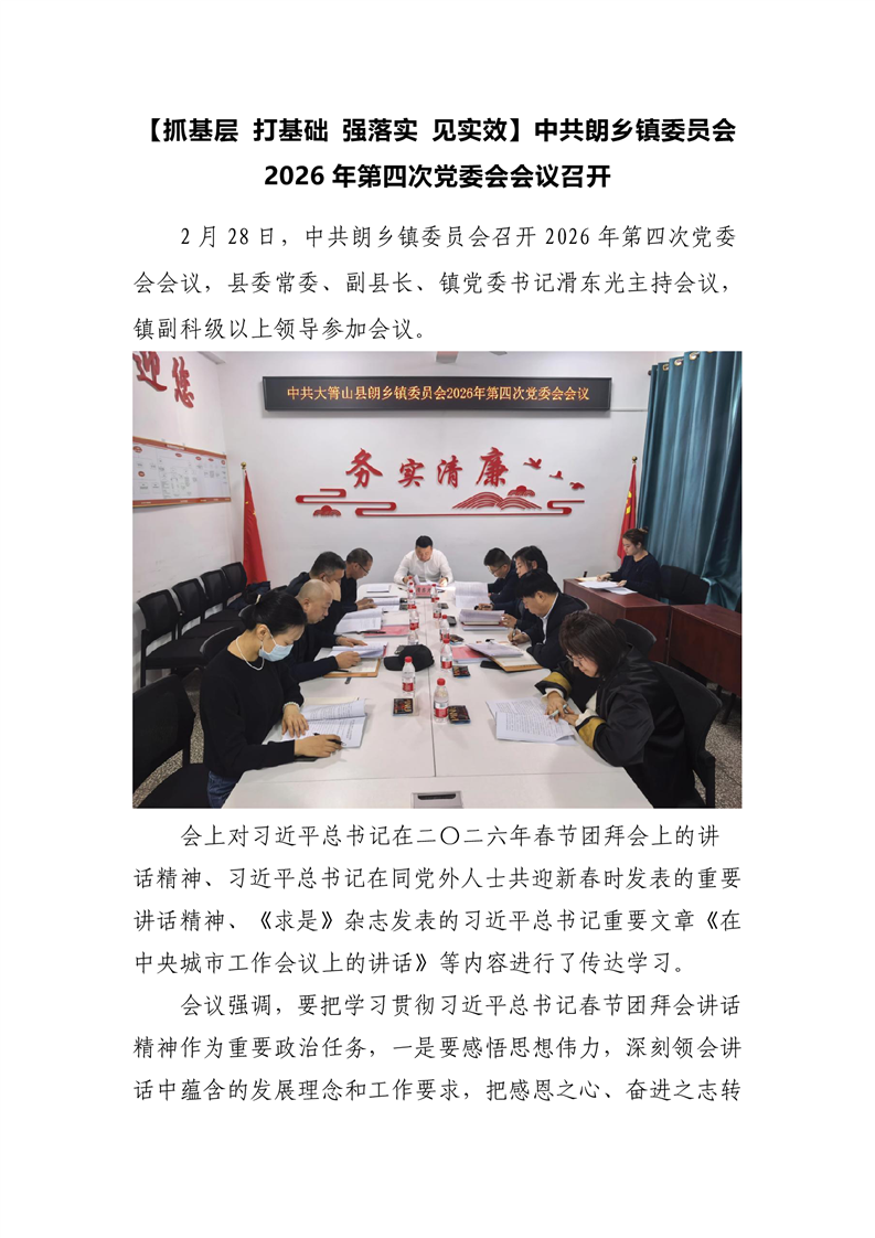 【抓基层 打基础 强落实 见实效】中共朗乡镇委员会2026年第四次党委会会议召开