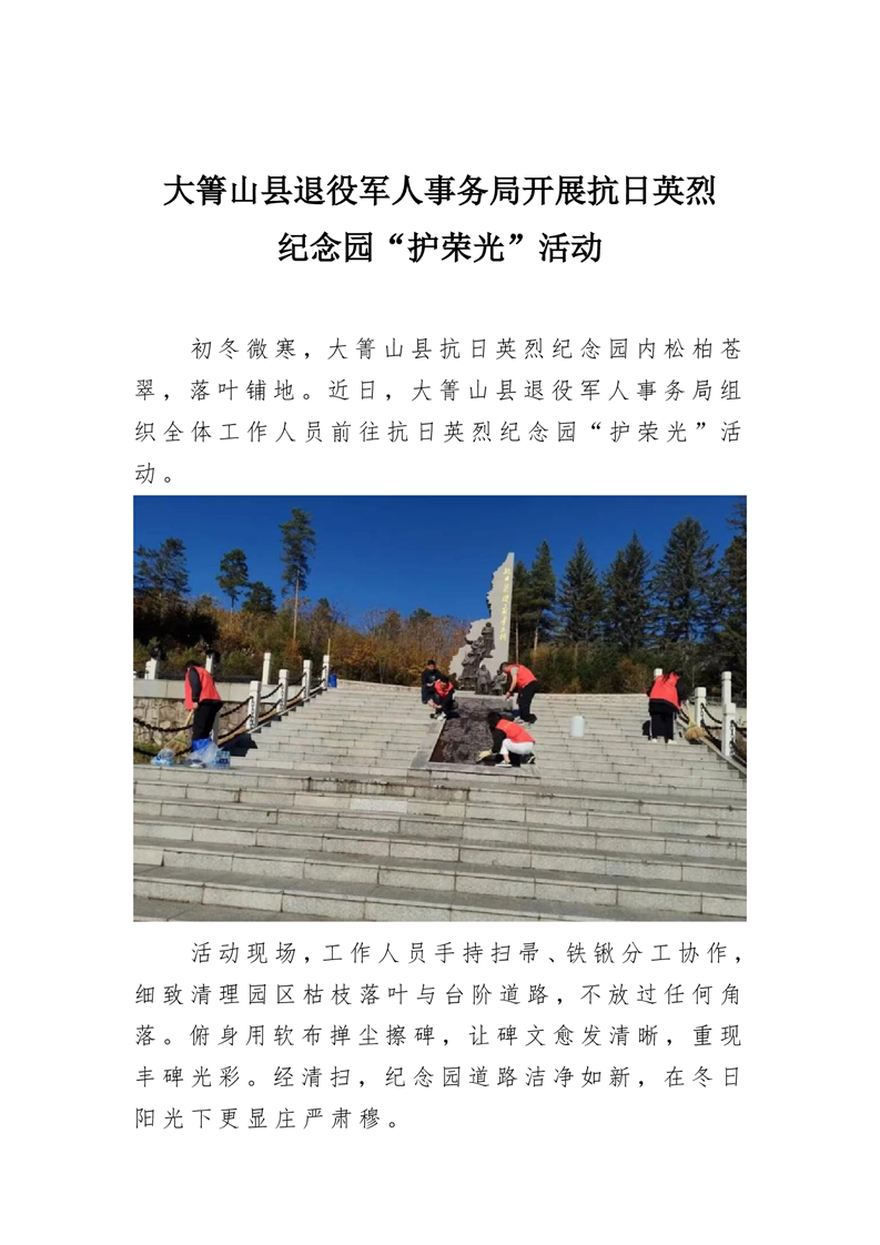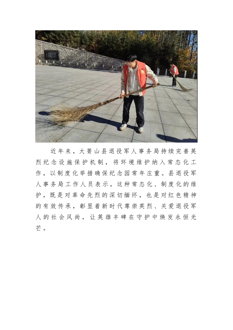 大箐山县退役军人事务局开展抗日英烈纪念园“护荣光”活动