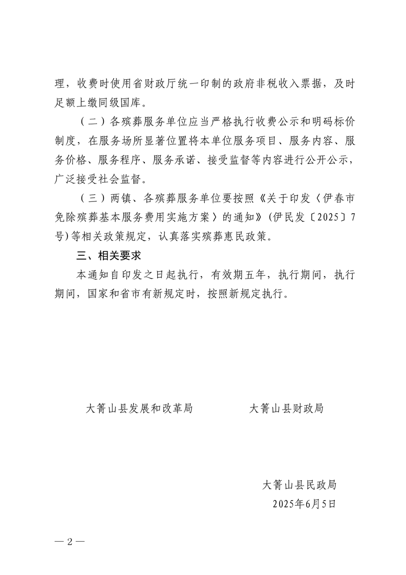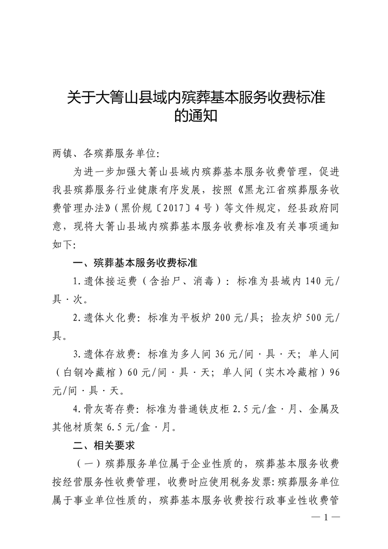 关于大箐山县域内殡葬基本服务收费标准的通知