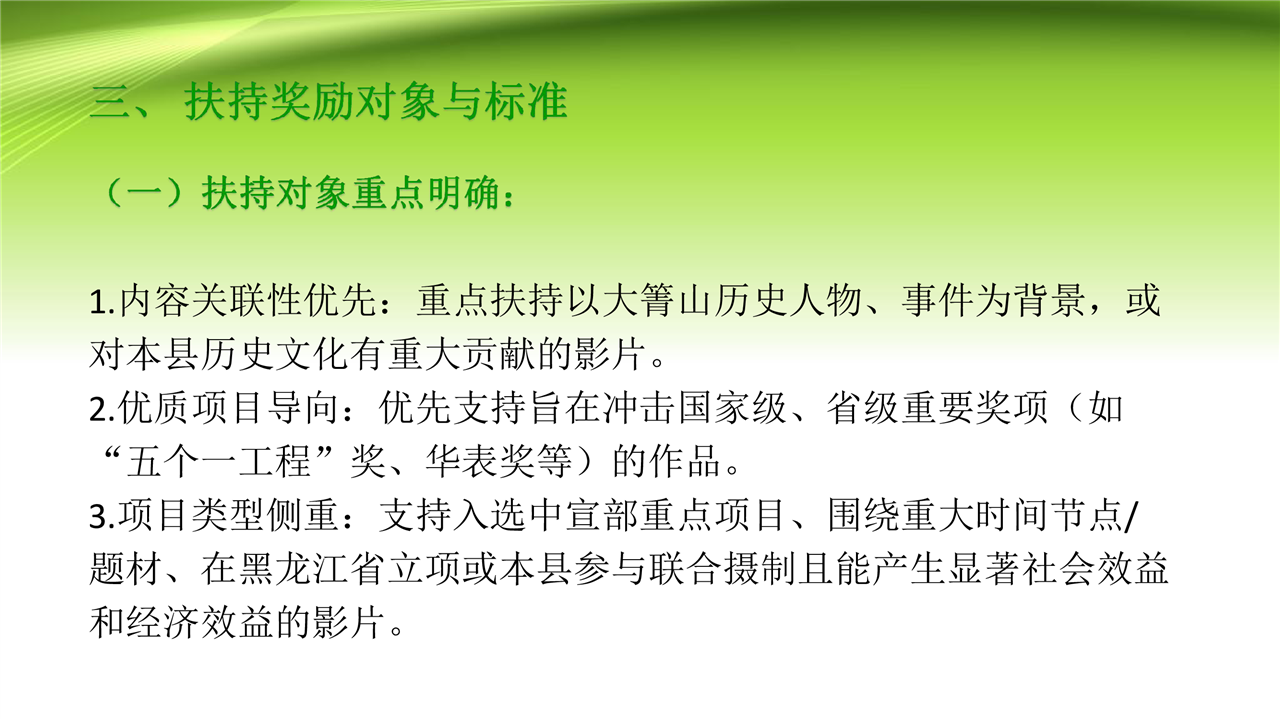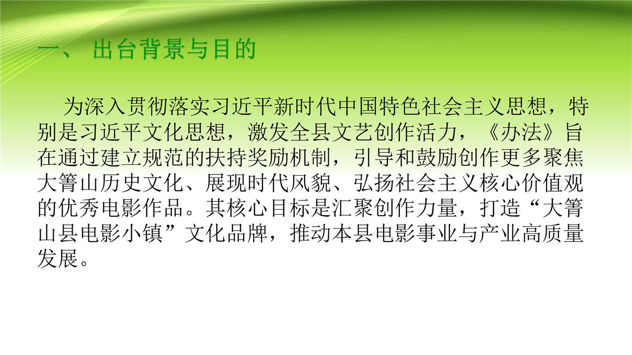 关于《大箐山县电影精品项目扶持奖励办法(试行)》的政策解读