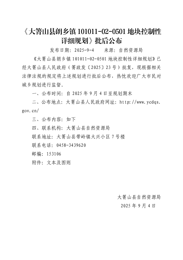 《大箐山县朗乡镇101011-02-0501地块控制性详细规划》批后公布