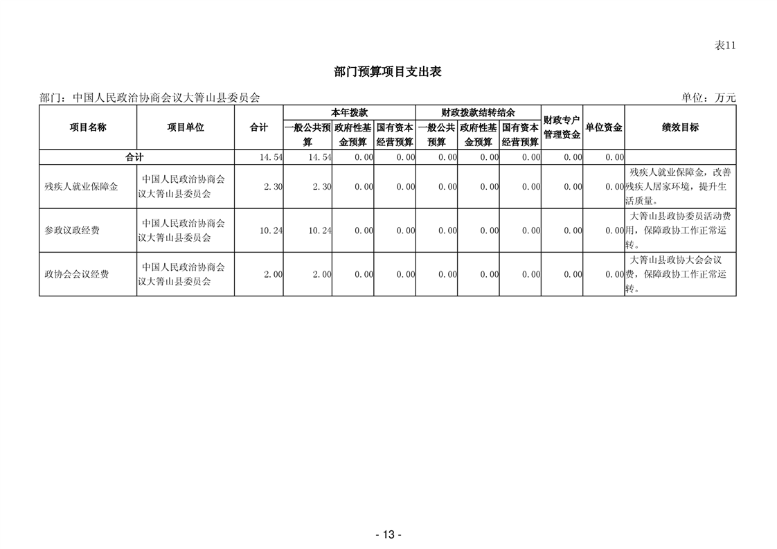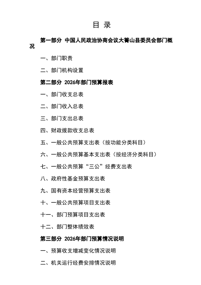 中国人民政治协商会议大箐山县委员会2026年部门预算公开