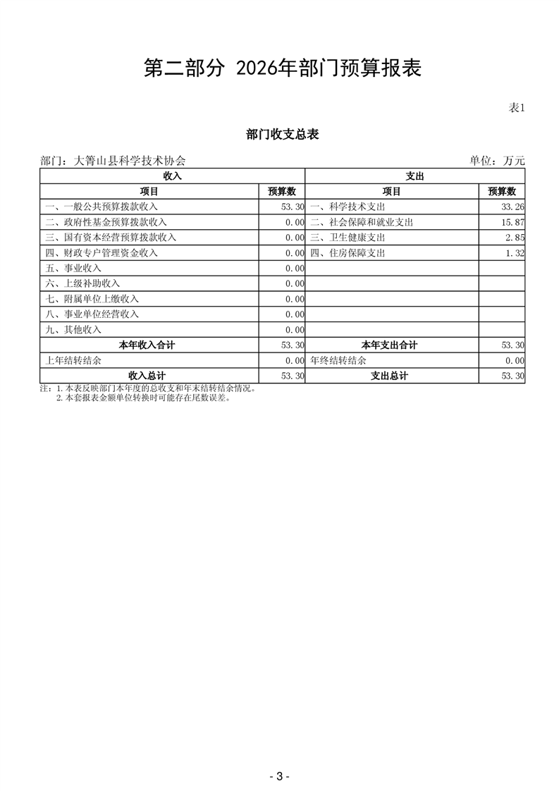 大箐山县科学技术协会2026年部门预算公开