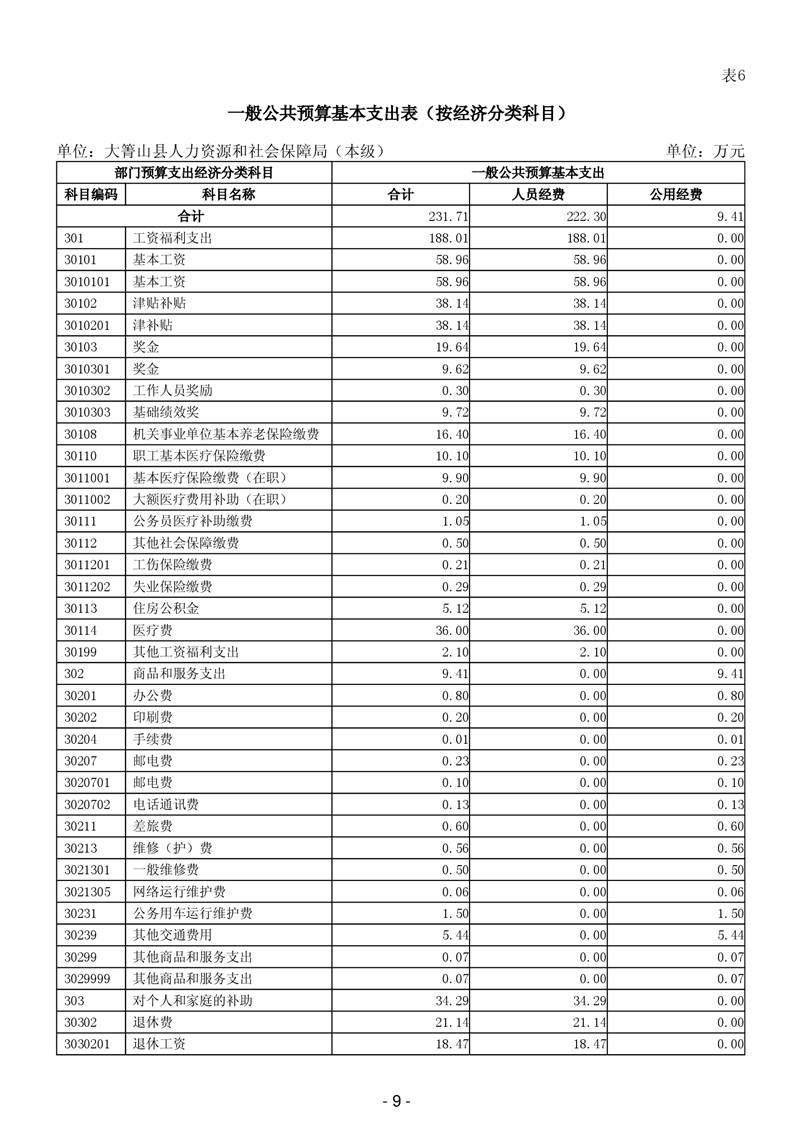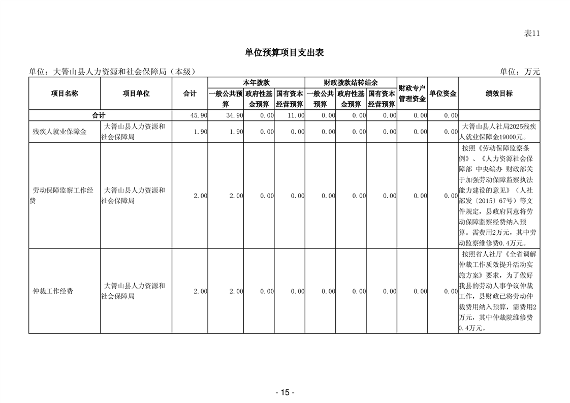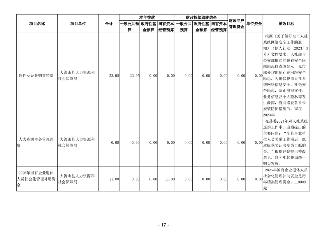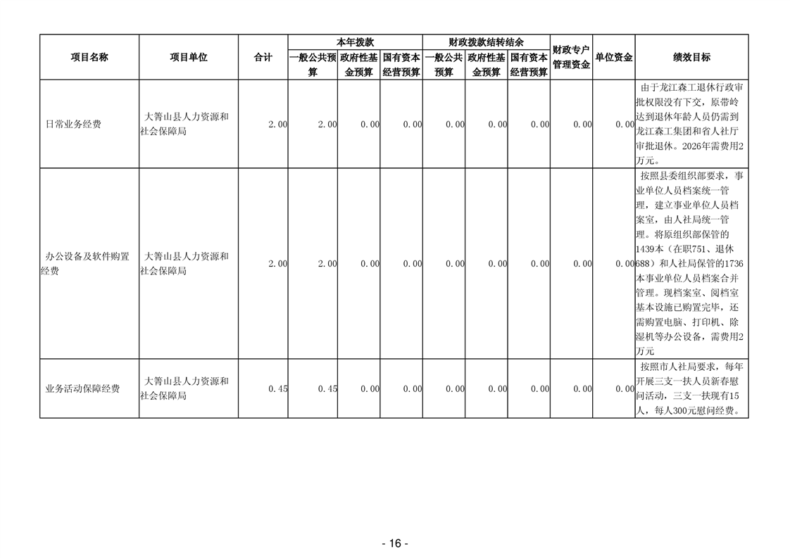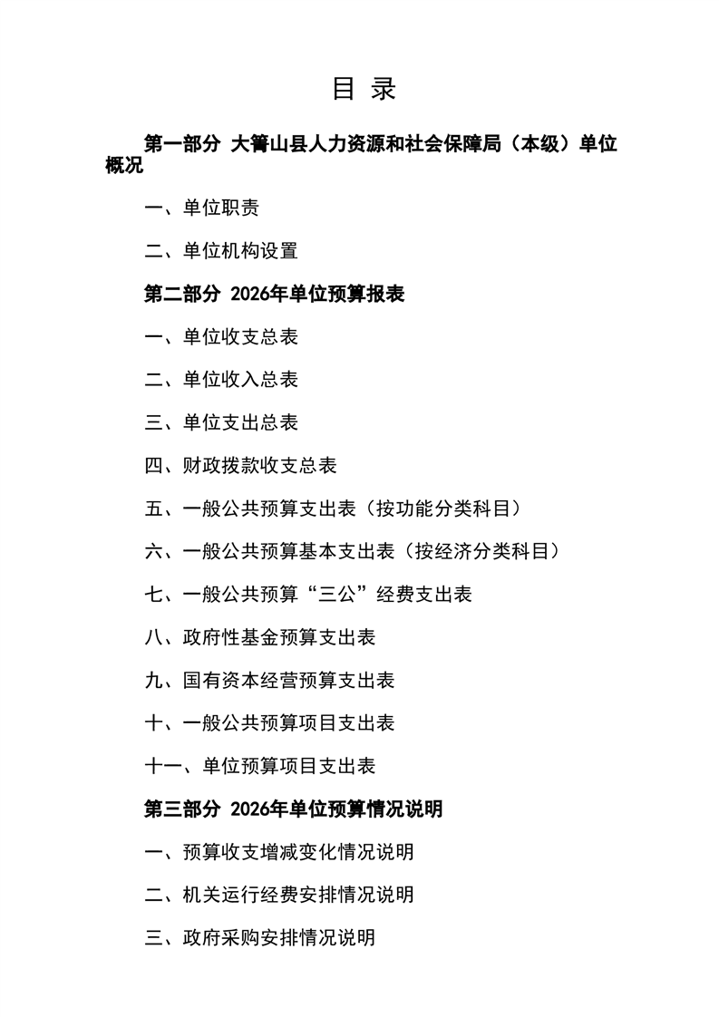 大箐山县人力资源和社会保障局2026年(本级)单位预算公开