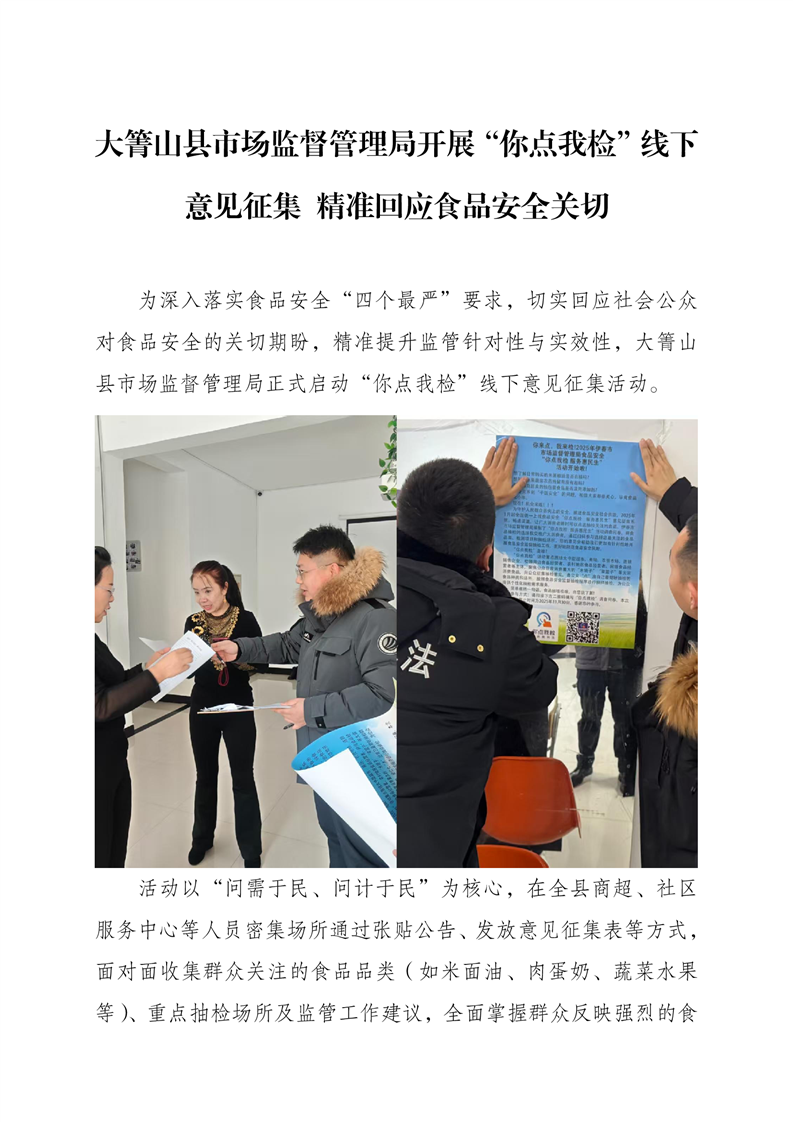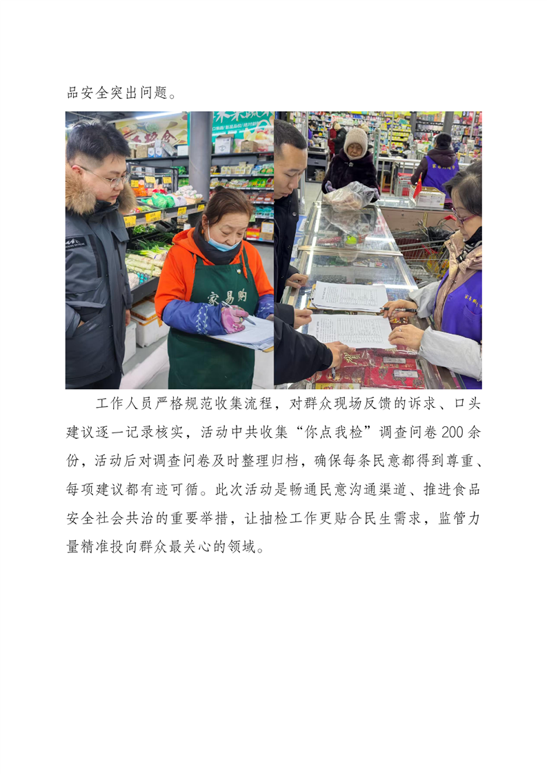 大箐山县市场监督管理局开展“你点我检”线下意见征集 精准回应食品安全关切