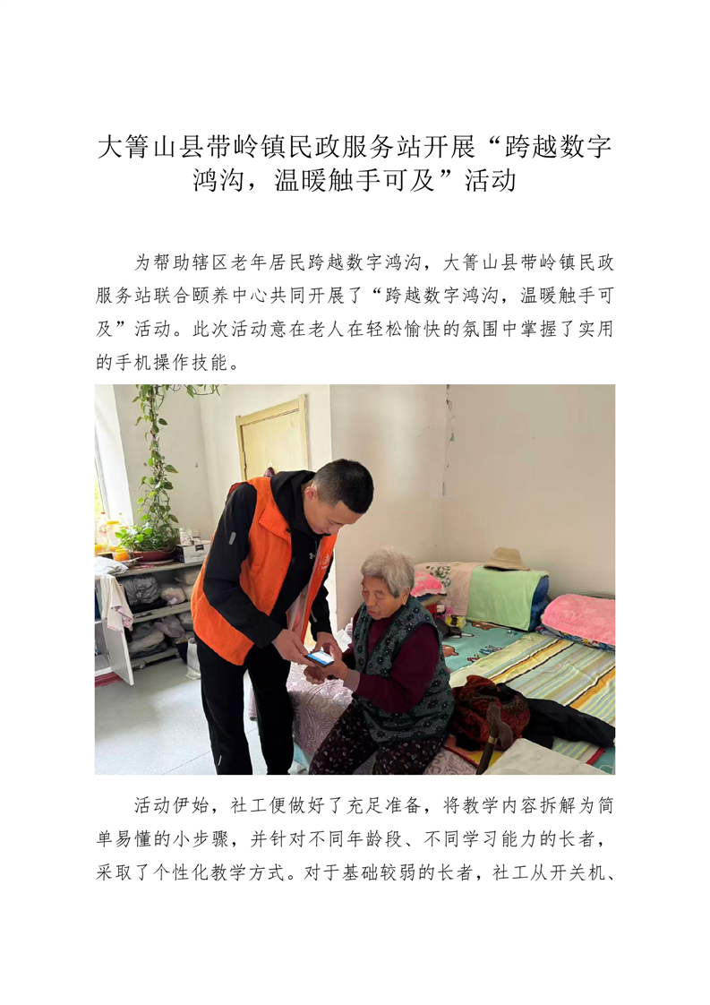 大箐山县带岭镇民政服务站开展“跨越数字鸿沟,温暖触手可及”活动
