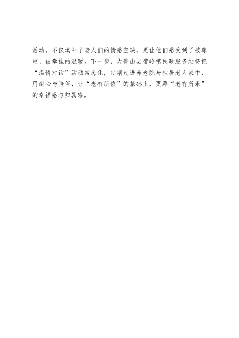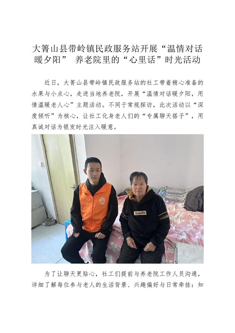 大箐山县带岭镇民政服务站开展“温情对话暖夕阳” 养老院里的“心里话”时光活动
