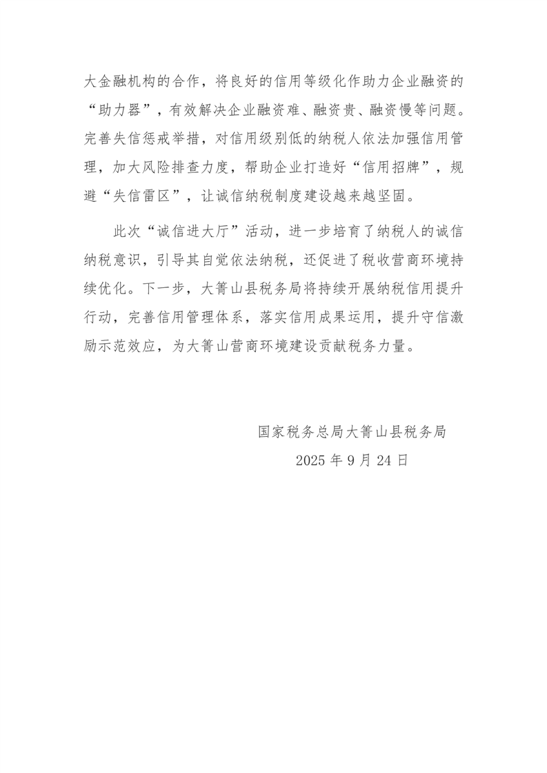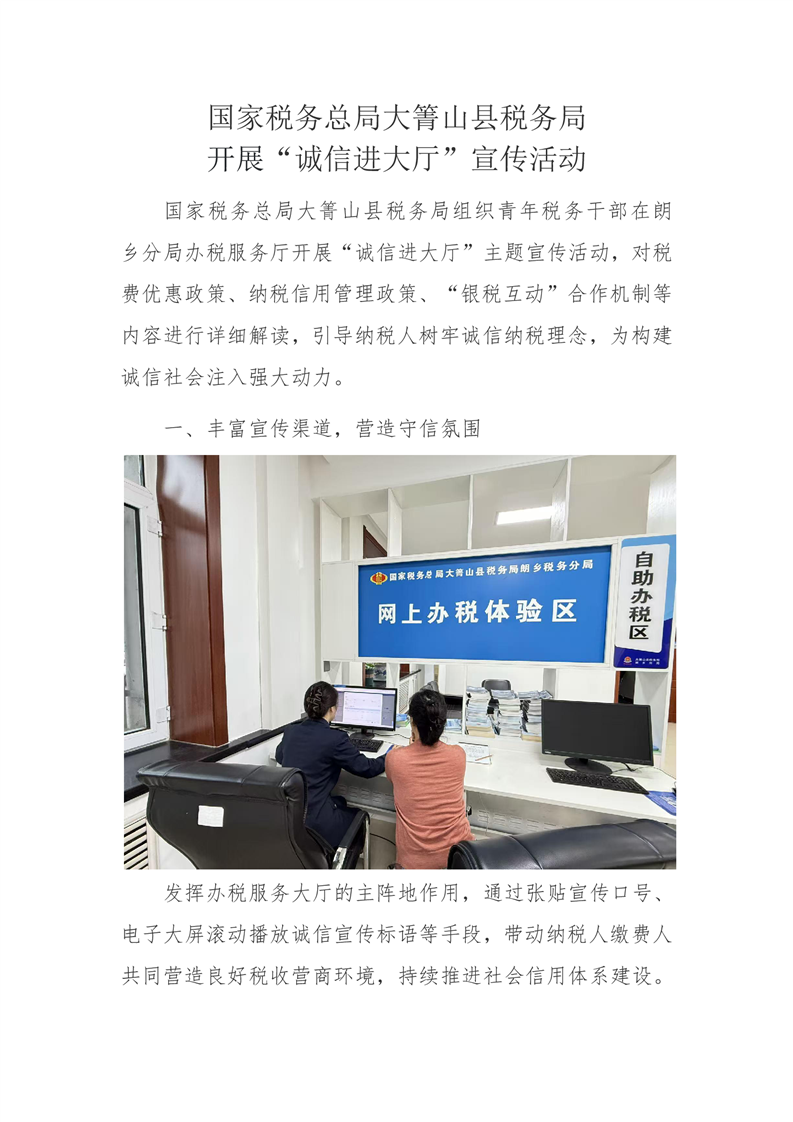 国家税务总局大箐山县税务局开展“诚信进大厅”宣传活动