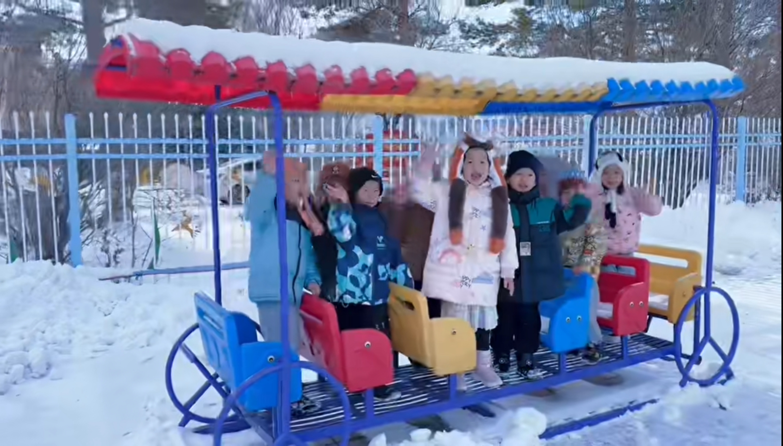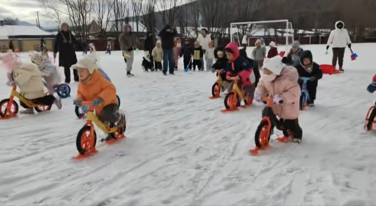带岭幼儿园的操场上,幼儿们戴着厚厚的手套、踩着防滑棉鞋,在老师的带领下举行“冰雪少年亚冬传承”冰雪运动会。他们举着绘有亚冬会吉祥物的小旗帜,用稚嫩的声音喊出“我爱冰雪,传承亚冬”的口号,镜头定格的瞬间,是童真与冰雪的完美邂逅。