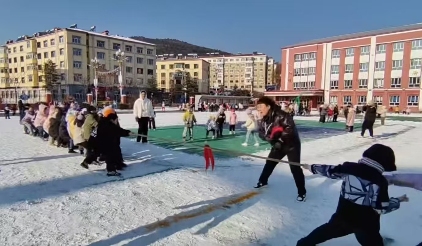 带岭小学的操场上,“雪地拔河”让现场氛围达到高潮,参赛同学步调一致紧握绳索奋力后拉,老师和其他同学则在一旁呐喊助威,笑声与欢呼声回荡在校园上空。活动中,老师还向孩子们讲解了亚冬会的基本常识,让亚冬精神在潜移默化中根植于心。