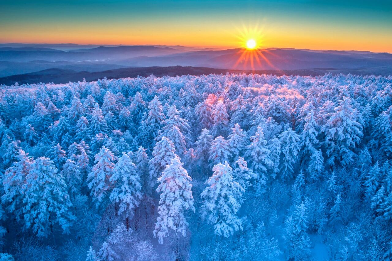 作为小兴安岭深处的宝藏小城,大箐山的冬天自带滤镜。这里有漫山遍野的雾凇琼枝,有银装素裹的原始森林,还有林海雪原里的壮阔与静谧。