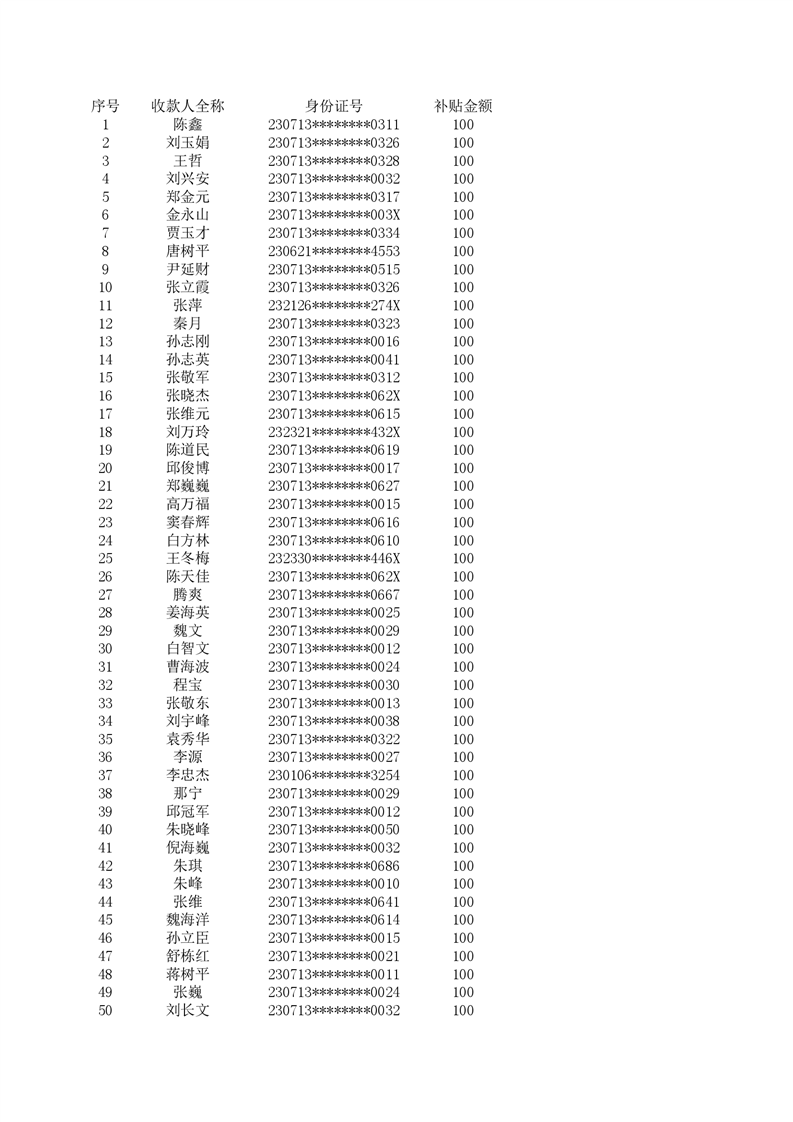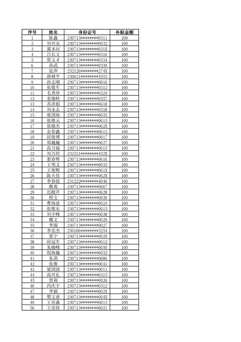 大箐山县2025年10月份残疾人两项补贴名单公示