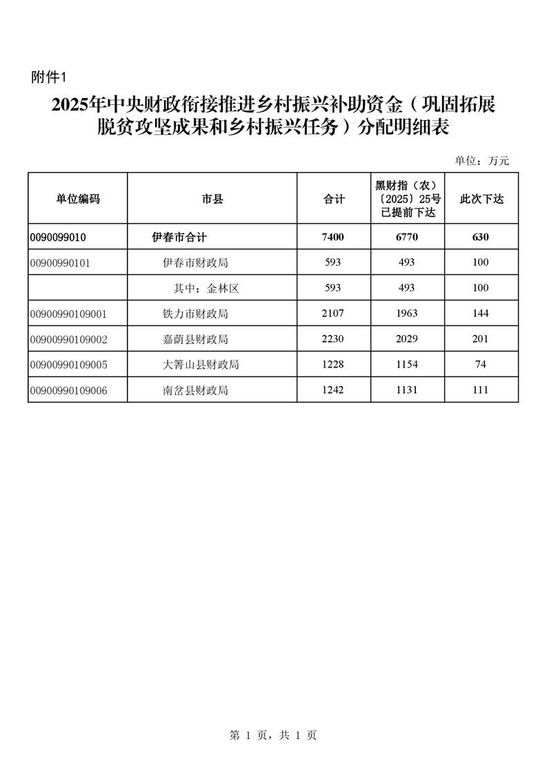 2025年中央财政衔接推进乡村振兴补助资金(巩固拓展脱贫攻坚成果和乡村振兴任务)分配明细表