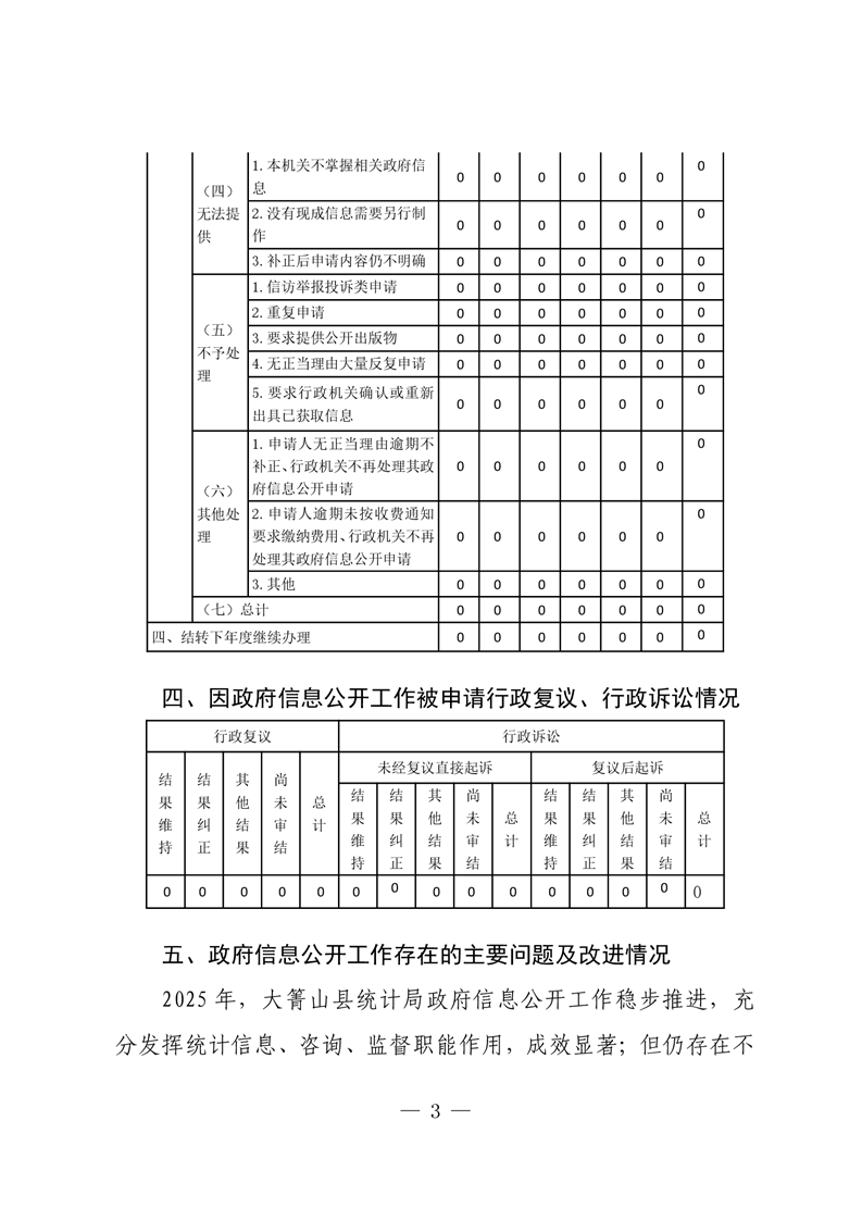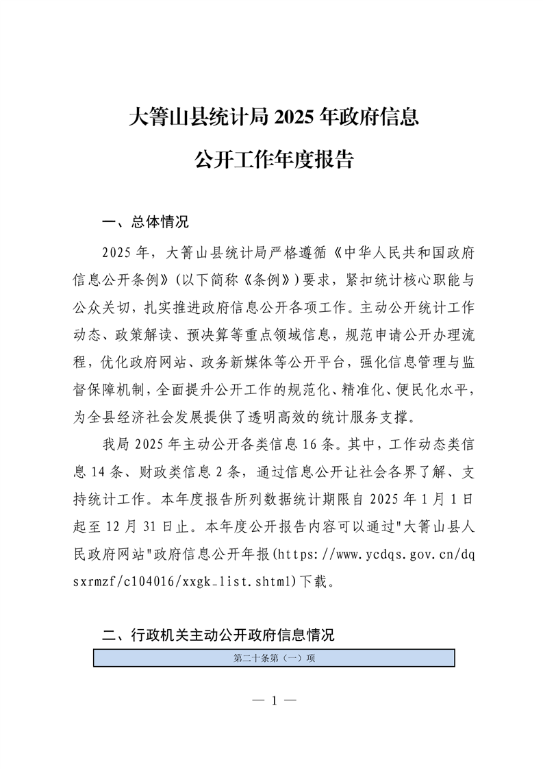 大箐山县统计局2025年政府信息公开工作年度报告
