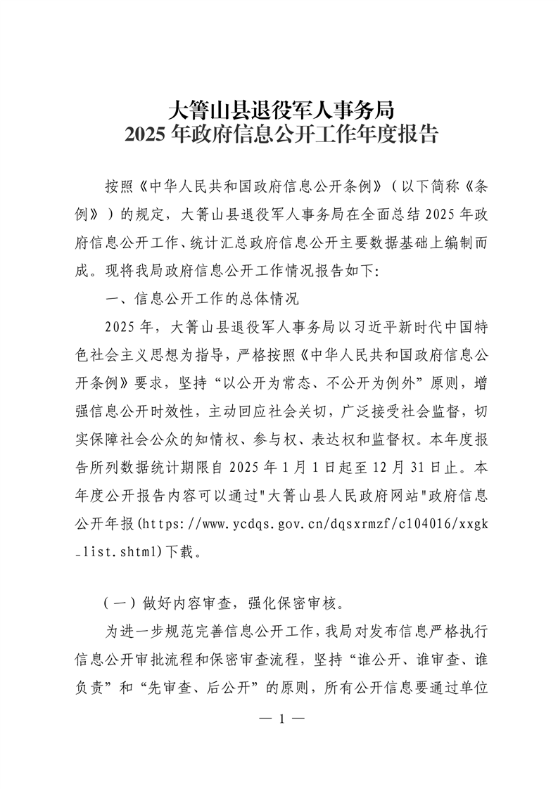 大箐山县退役军人事务局2025年政府信息公开工作年度报告