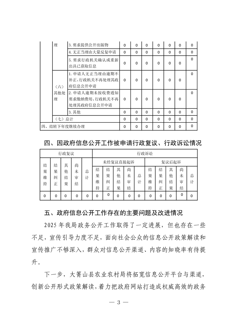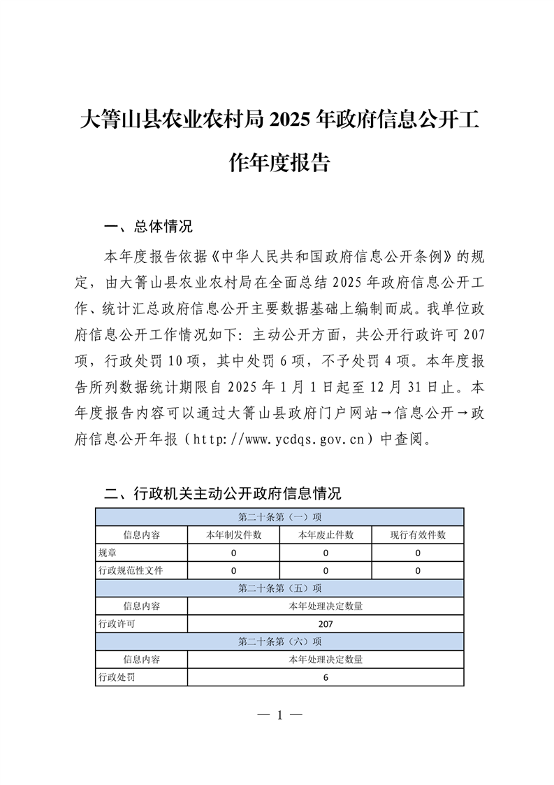 大箐山县农业农村局2025年政府信息公开工作年度报告
