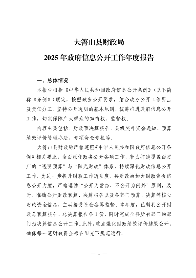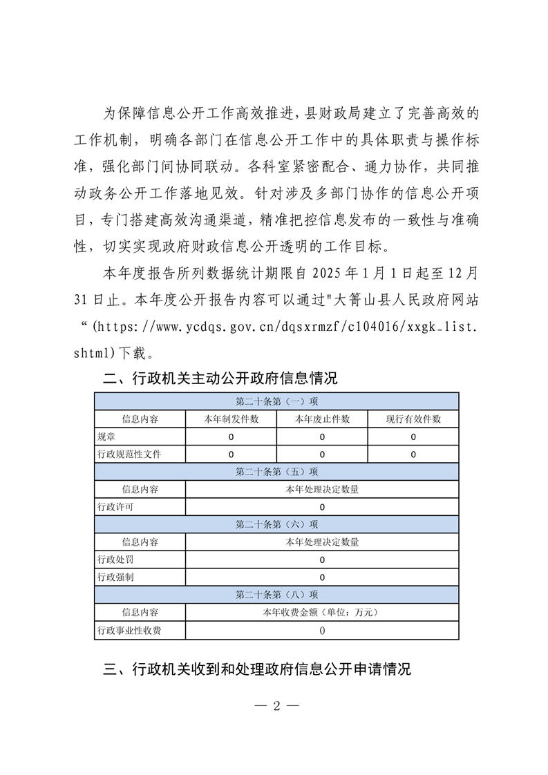 大箐山县财政局2025年政府信息公开工作年度报告