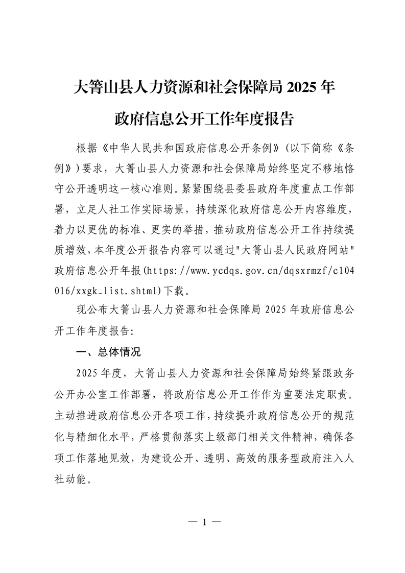 大箐山县人力资源和社会保障局2025年政府信息公开工作年度报告