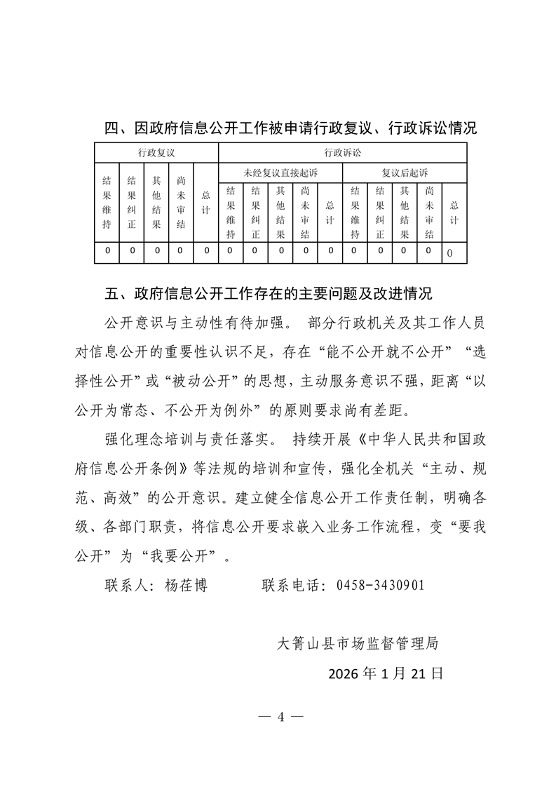 大箐山县市场监督管理局2025年政府信息公开工作年度报告